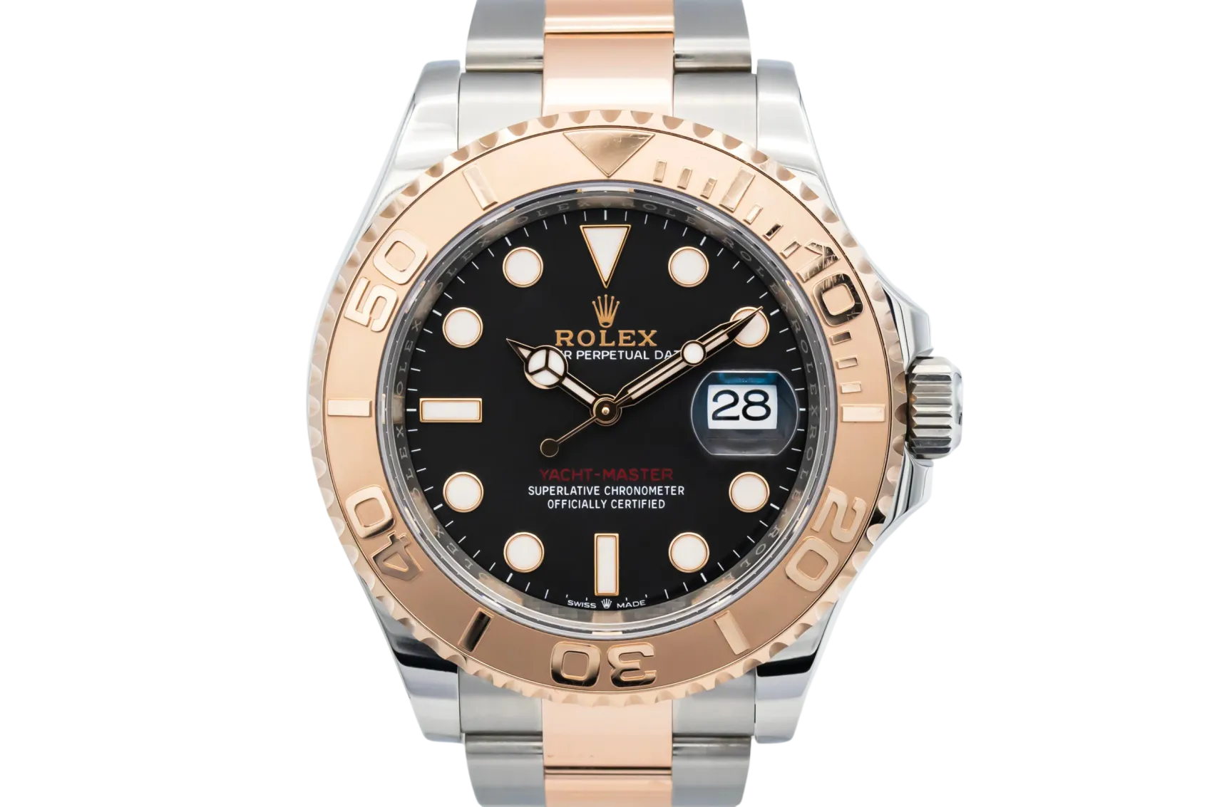 finance this from £195.41 p/m call the shop Read about our Limited Lifetime WarrantyThis 2023 Rolex Yacht-Master 40mm is a refined luxury sports watch crafted from stainless steel and 18ct Everose gold. The black dial features luminous hour markers and Mercedes hands for excellent legibility, complemented by the distinctive bidirectional Everose gold bezel with raised polished numerals. Finished on the robust steel and Everose gold Oyster bracelet with a secure Oysterlock clasp.