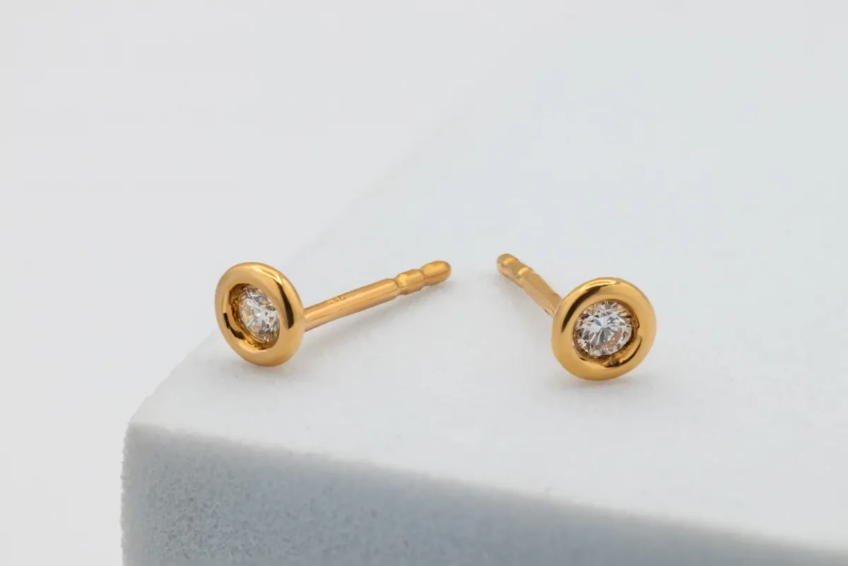 18ct Rose Gold Rubover Diamond Stud Earrings 1.3g
