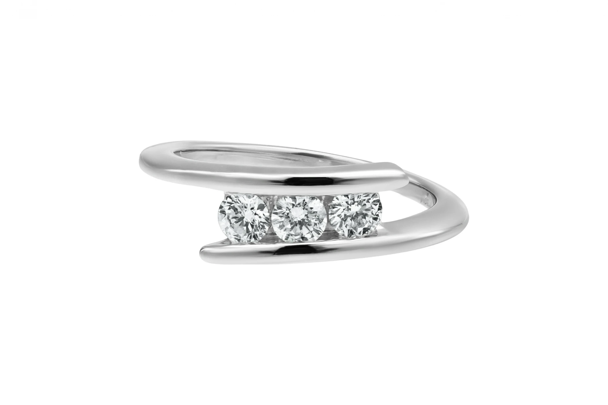 This elegant 18ct white gold ring features a trio of round brilliant cut diamonds totalling 0.48ct. Graded G colour with VS clarity, the diamonds are set to maximise brilliance while symbolising the past, present, and future.
