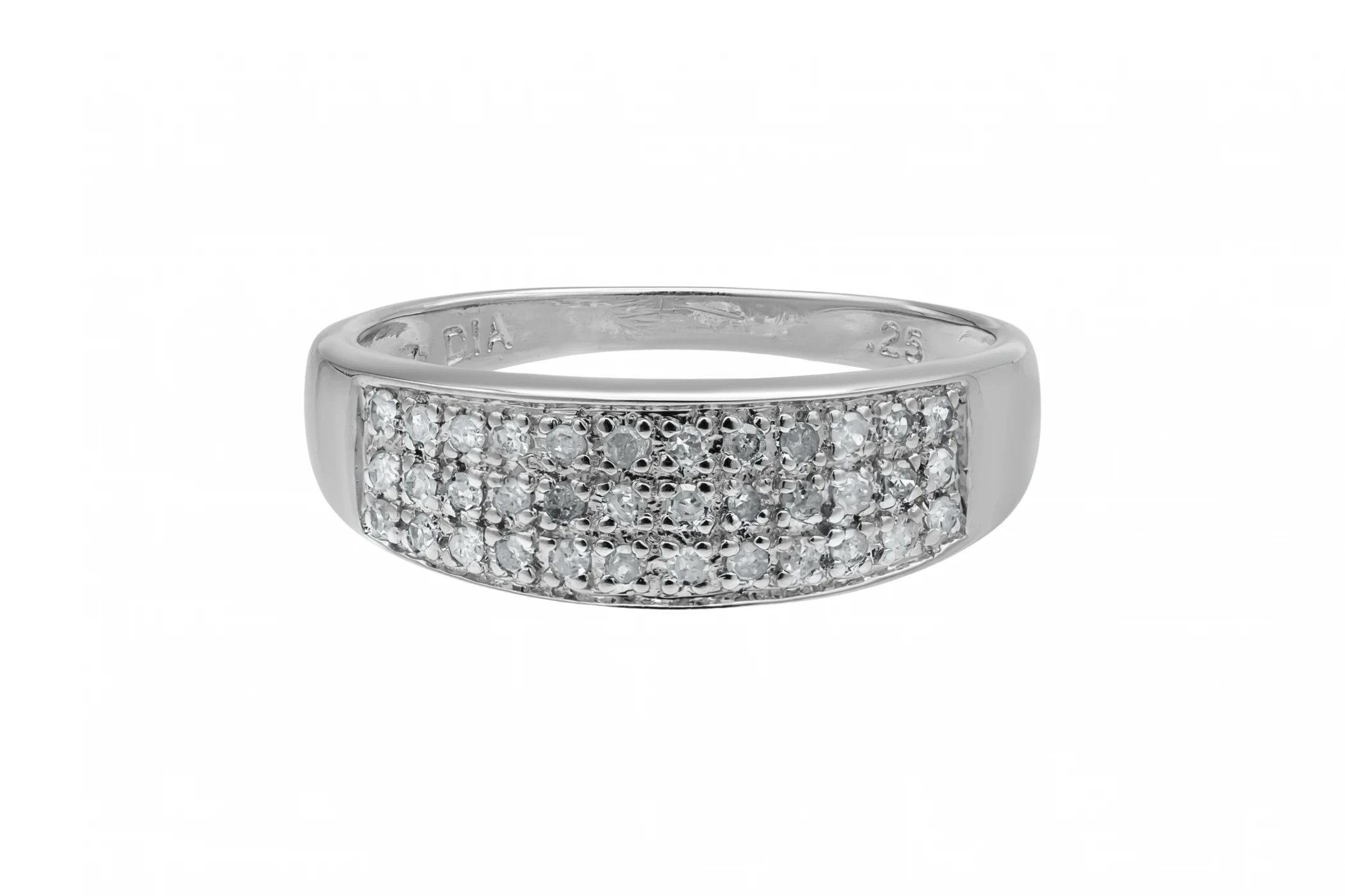 This elegant 9ct white gold ring is set with 0.26ct of round brilliant cut diamonds, graded G colour with SI clarity for exceptional sparkle and radiance.