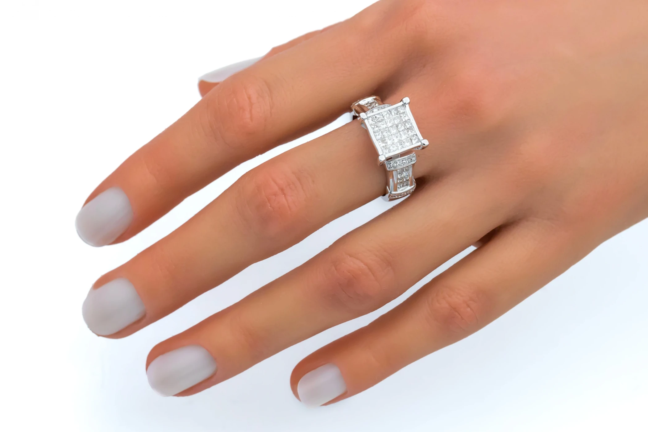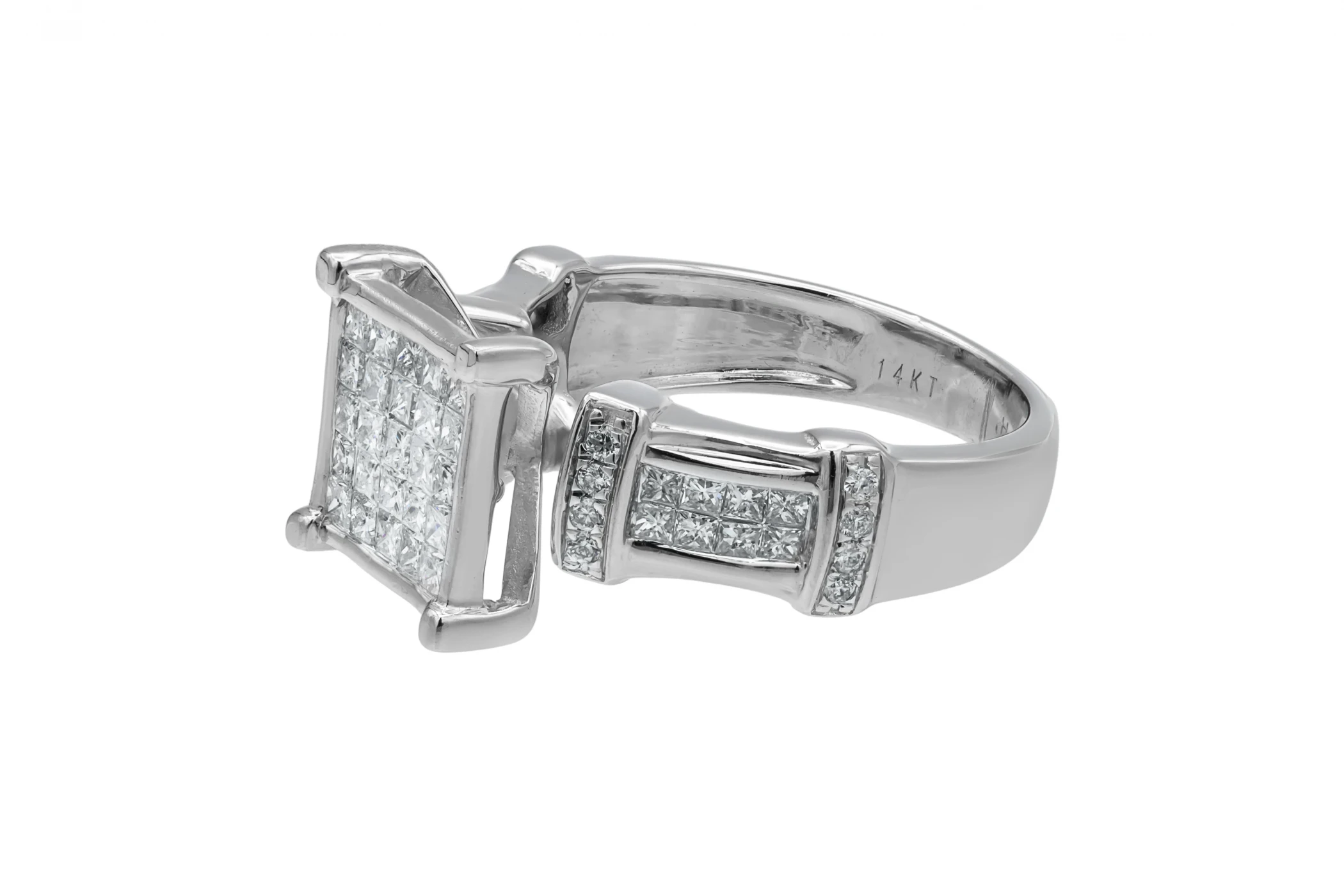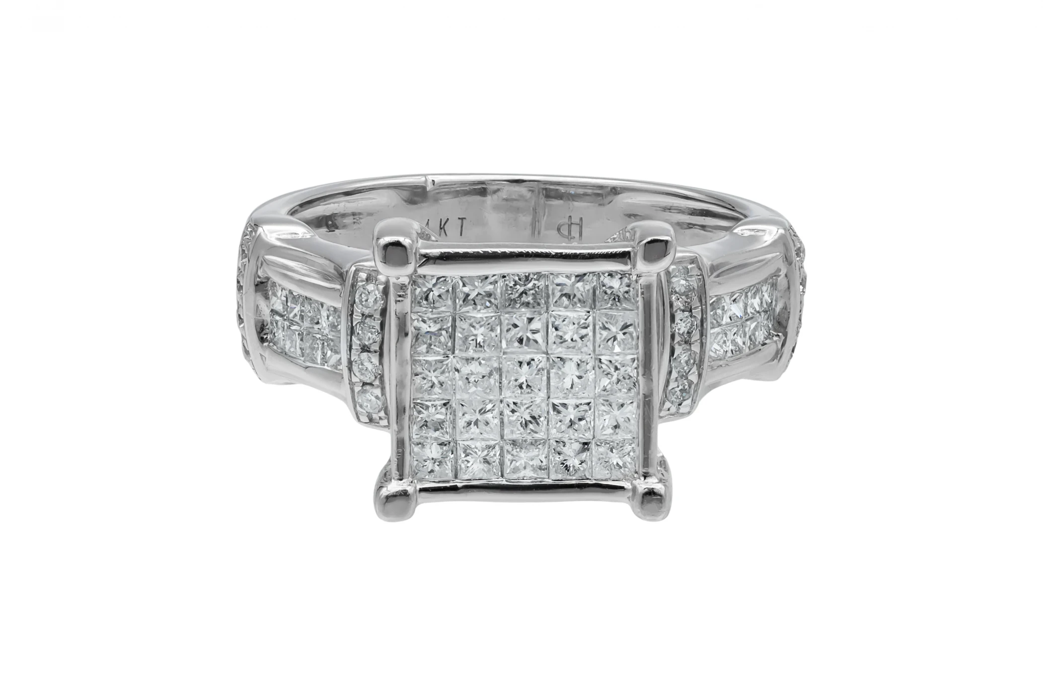 14ct White Gold Diamond Princess & Round Cut Pave Ring 5.8g