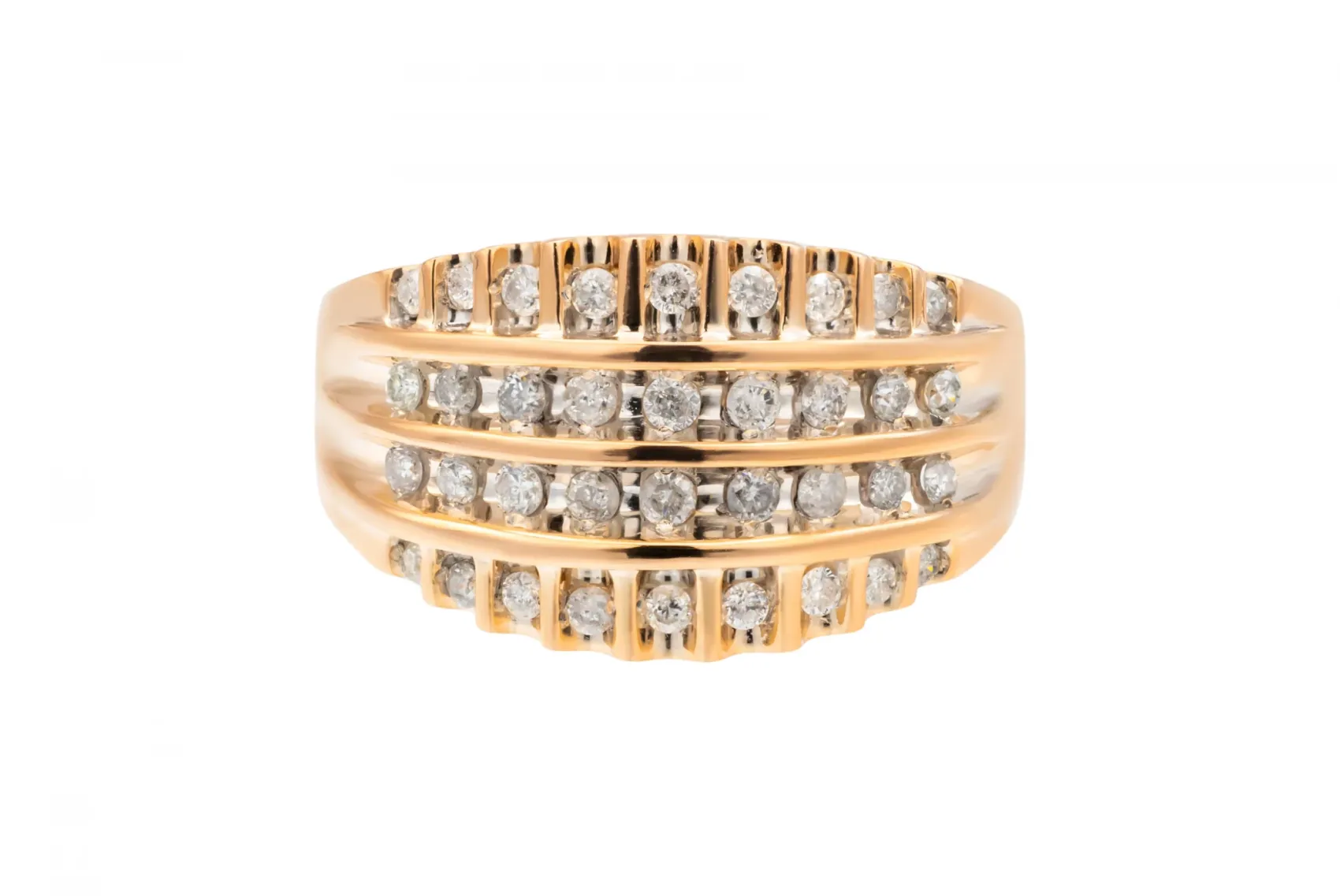 This refined 14ct rose gold ring is set with 0.36ct of round brilliant cut diamonds, graded I colour with SI clarity for exceptional radiance.