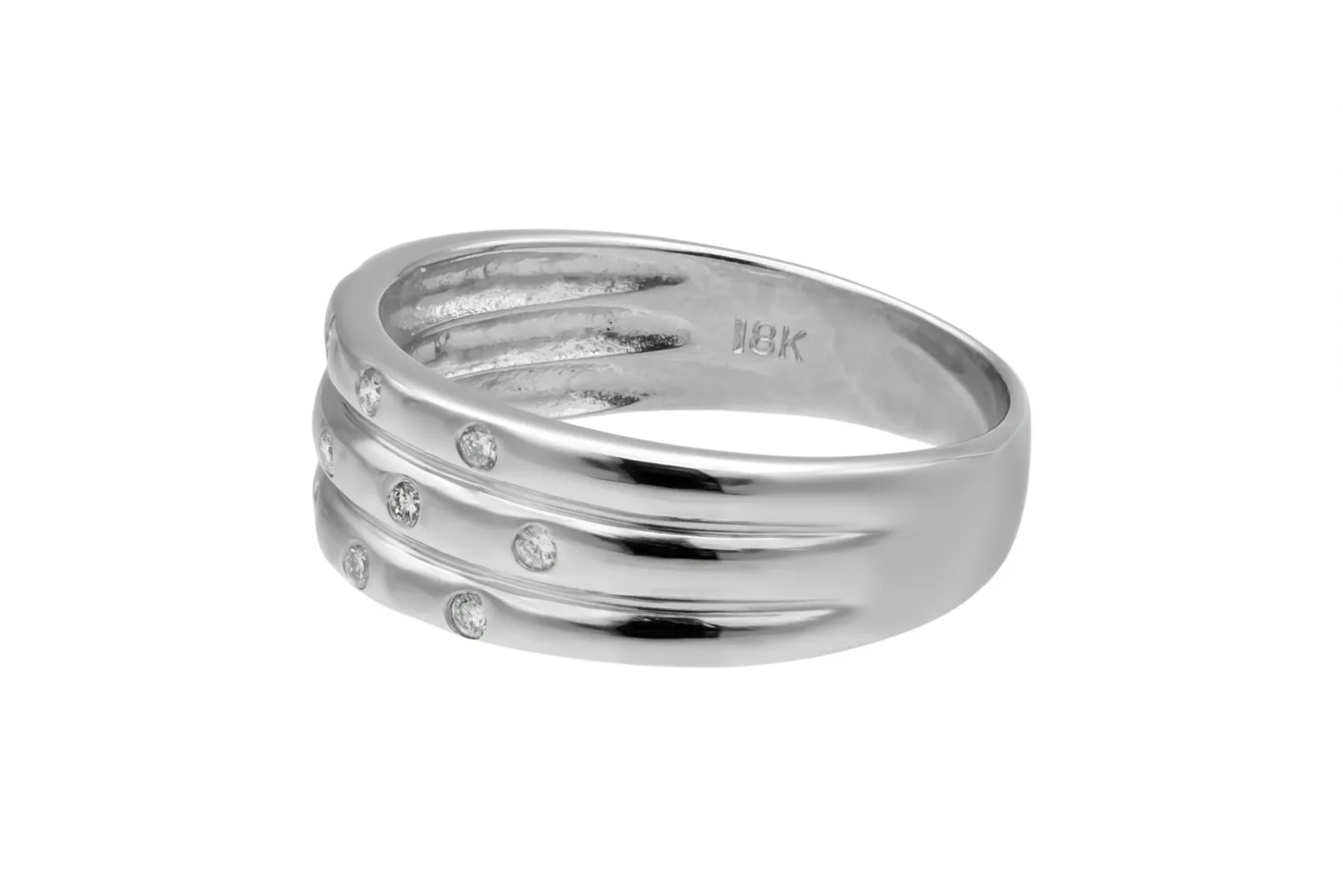This refined 18ct white gold ring is set with 0.13ct of round brilliant cut diamonds, graded H colour with SI clarity for a subtle yet radiant sparkle.