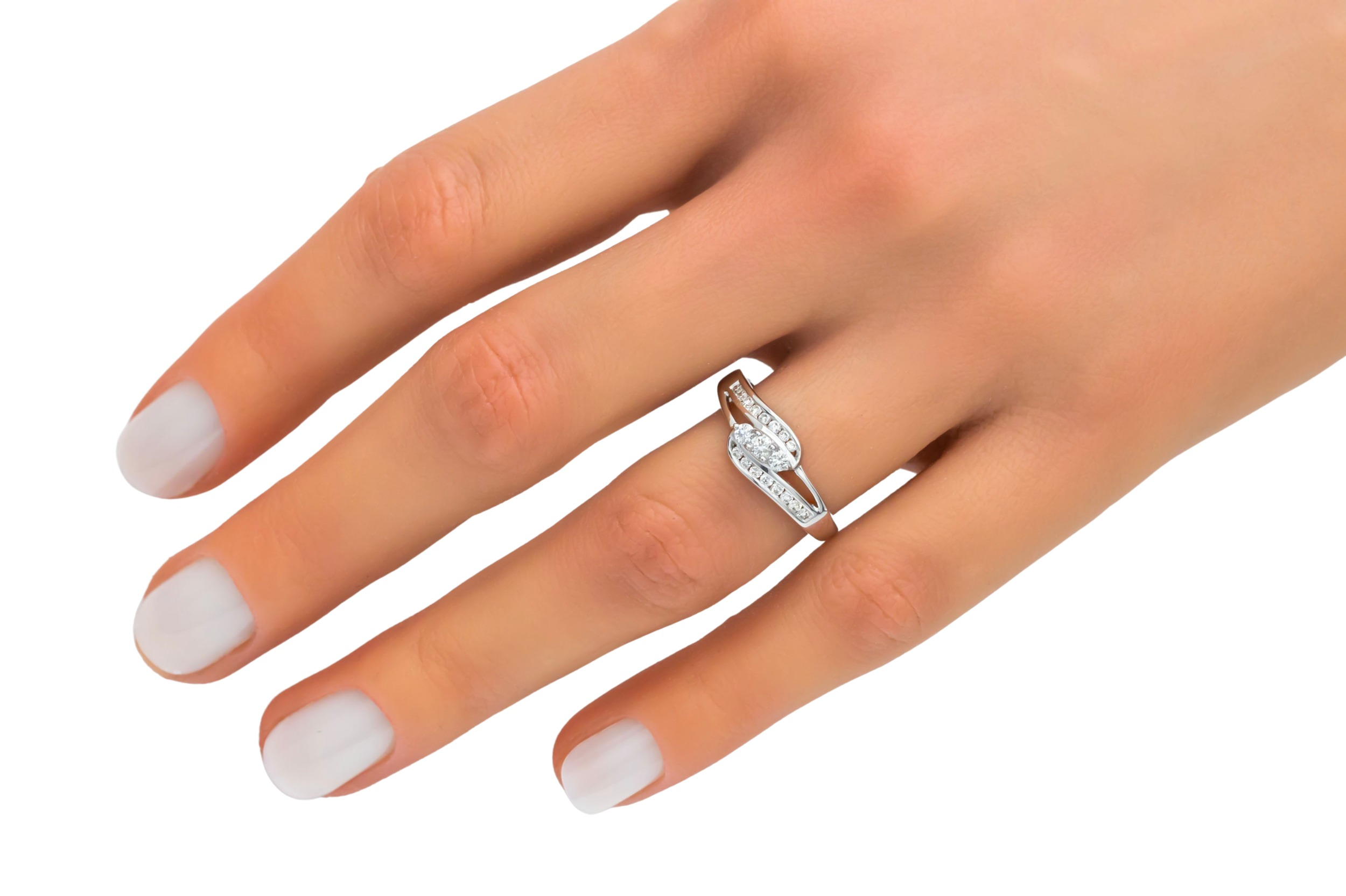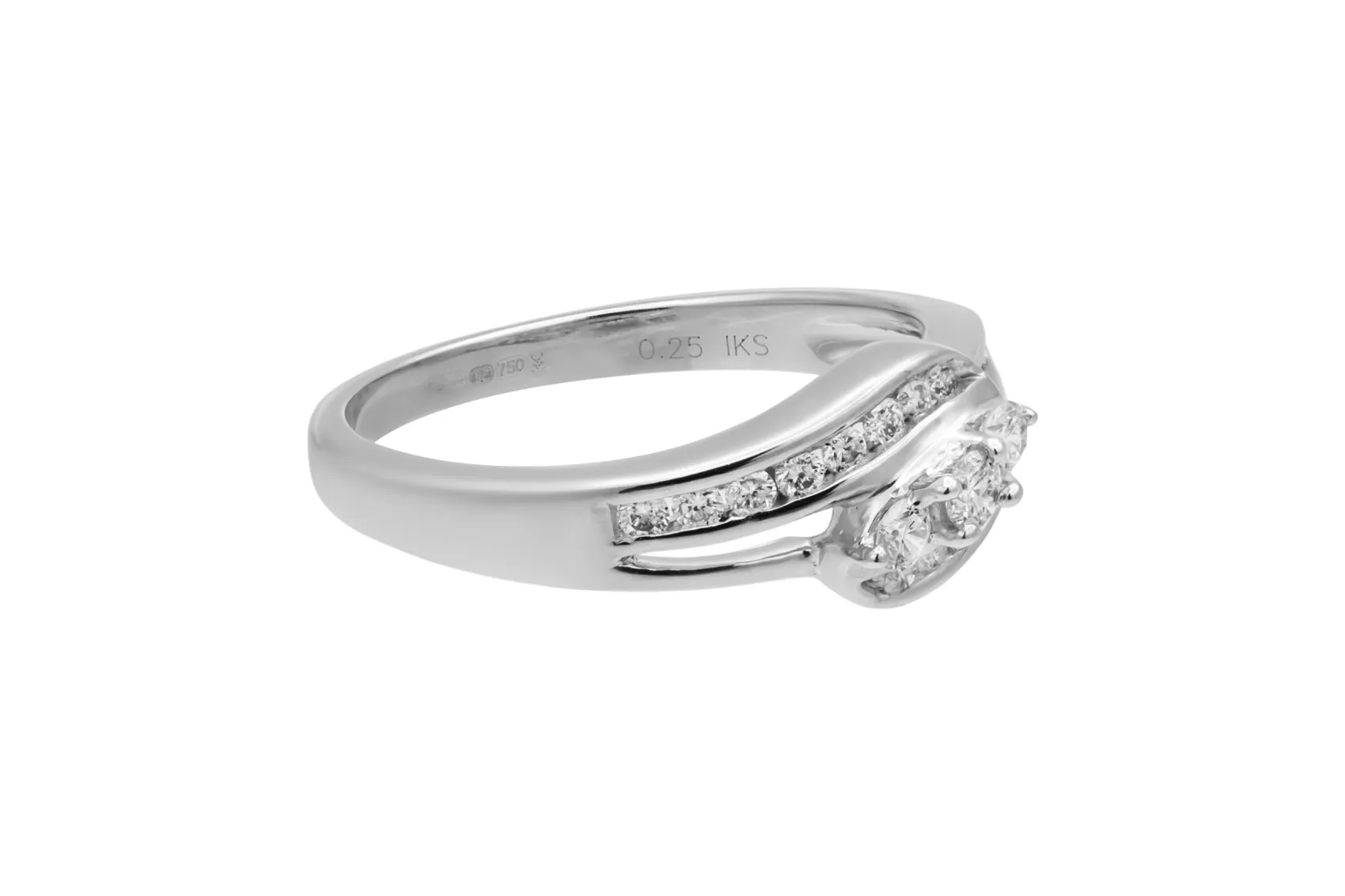 This refined 18ct white gold ring is set with 0.25ct of round brilliant cut diamonds, graded F colour with SI clarity for crisp, bright sparkle.