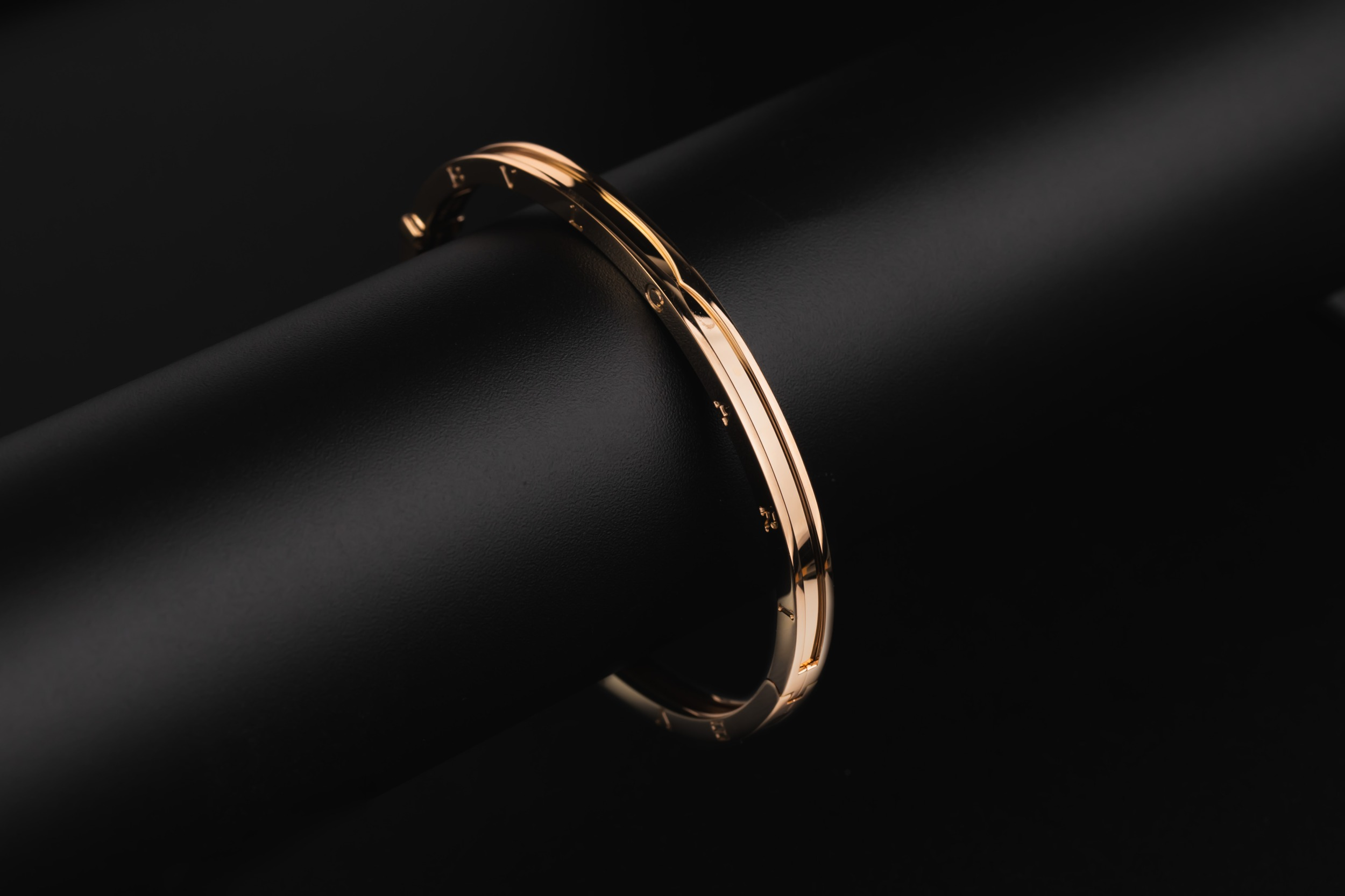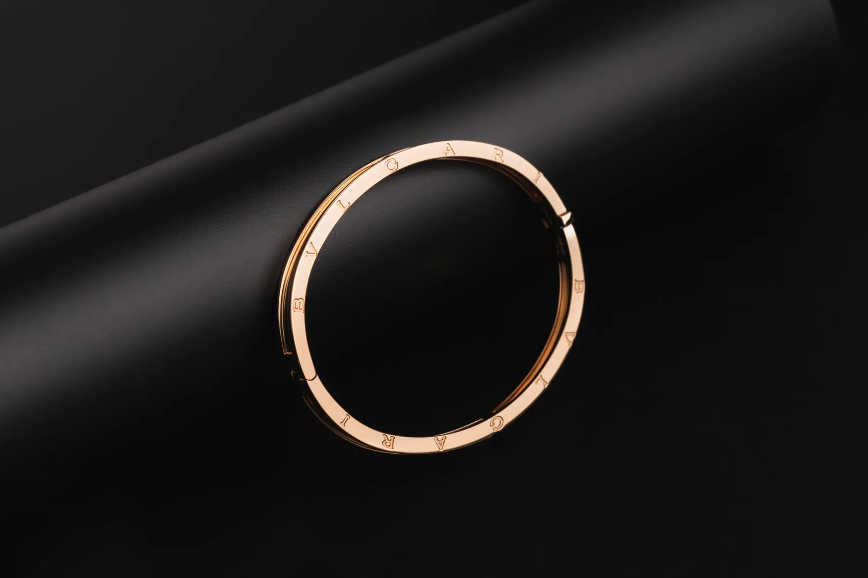 This iconic Bvlgari B.zero1 bracelet, first introduced in 1999, is crafted in solid 18ct rose gold and reflects the collection’s signature fusion of Roman inspiration and contemporary industrial design.