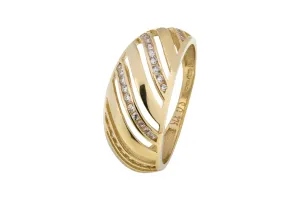 Crafted in warm 9ct yellow gold, the design offers a modern yet timeless aesthetic, perfect as a statement piece for both everyday elegance and special occasions. Beautifully detailed and expertly made, this ring combines unique style, luxurious sparkle, and exceptional craftsmanship in one captivating piece.