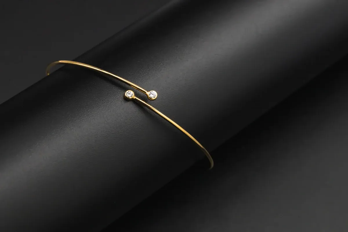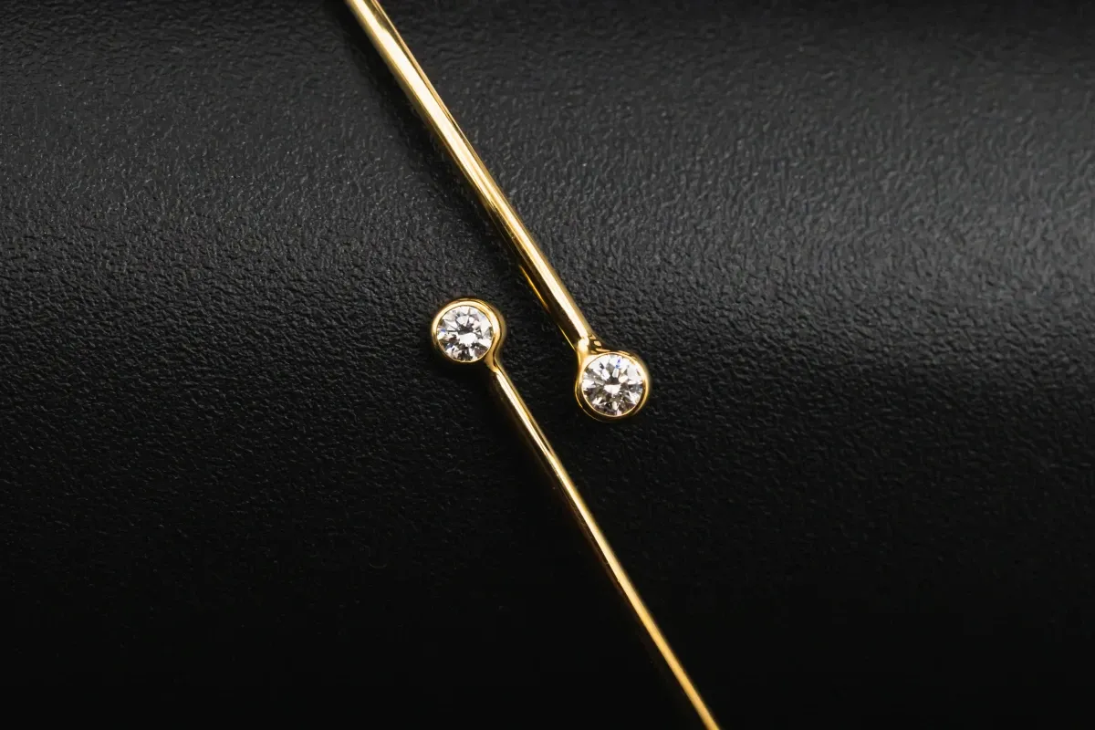 The Tiffany & Co Elsa Peretti Diamond Hoop Single-Row Bangle showcases a sleek and elegant design, adorned with a delicate row of sparkling diamonds