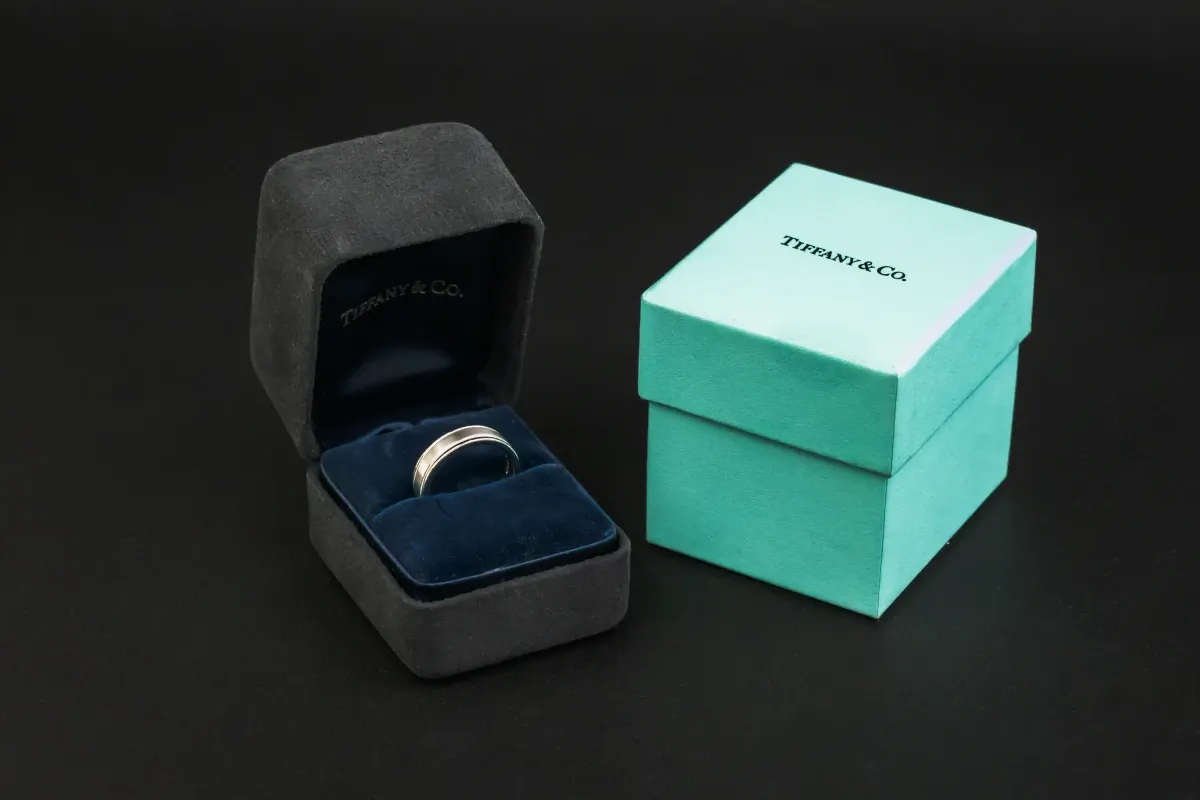 Ideal for those seeking a sleek and durable wedding band with signature Tiffany style.