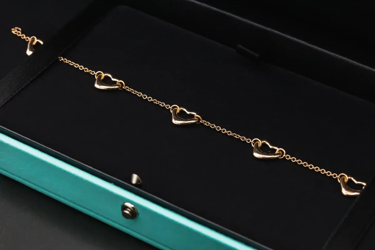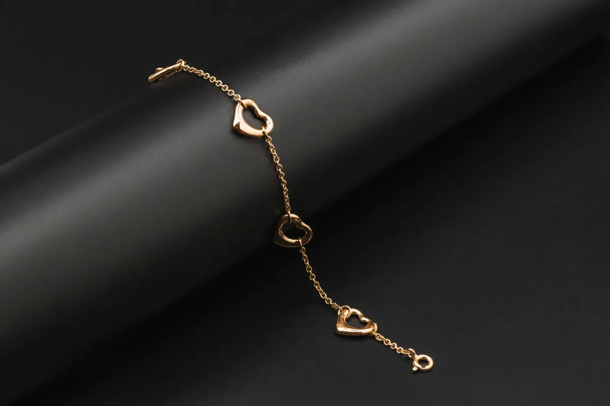 Crafted in 18ct yellow gold, this 7-inch bracelet features delicate hearts that exude timeless sophistication, making it a perfect symbol of elegance and romance.