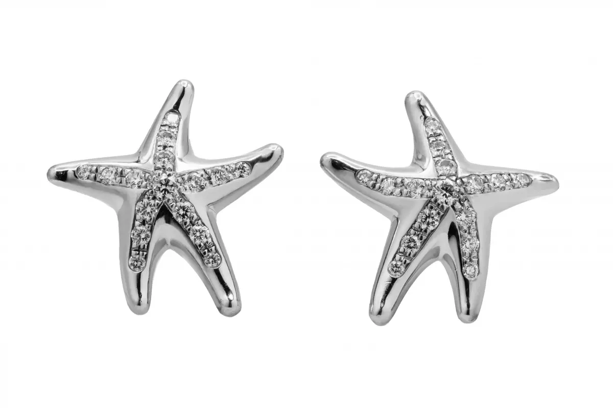An elegant and playful design from Tiffany & Co., this Starfish diamond earring captures the beauty of the ocean with timeless sophistication. Expertly crafted, the starfish silhouette is set with sparkling diamonds that add brilliance and refined detail.