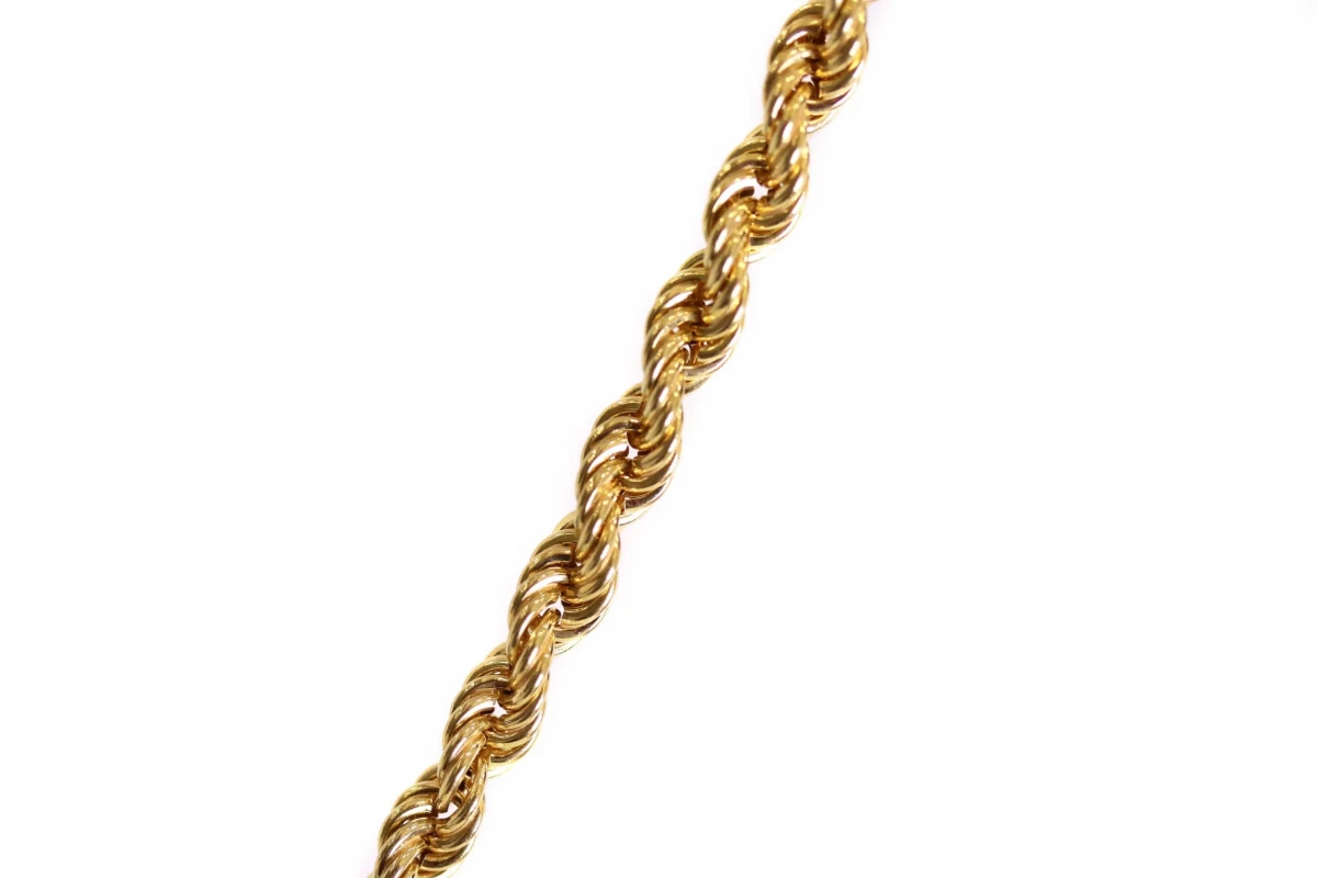 9ct yellow gold rope chain, 27.2g 3mm width and 36'' length. Available in various shapes and sizes.